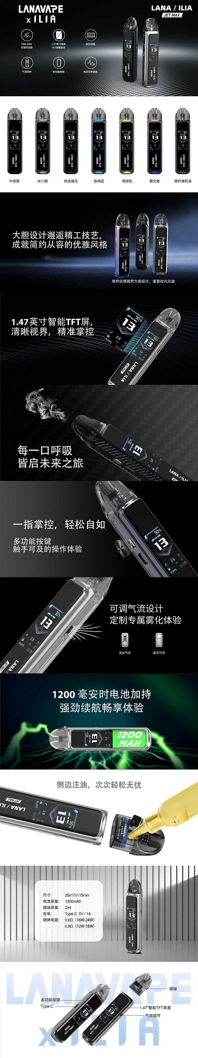 LANA/ILIA-JRT MAX套裝【註油式煙彈+超長續航主機+可控氣流大小+液晶屏顯】